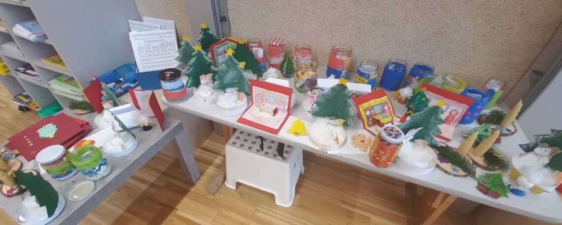 Wie die fleißigen Weihnachtswichtel werkten am 19. Dezember die Kinder der 1/2 b und 1/2 e in der Weihnachtswerkstatt.